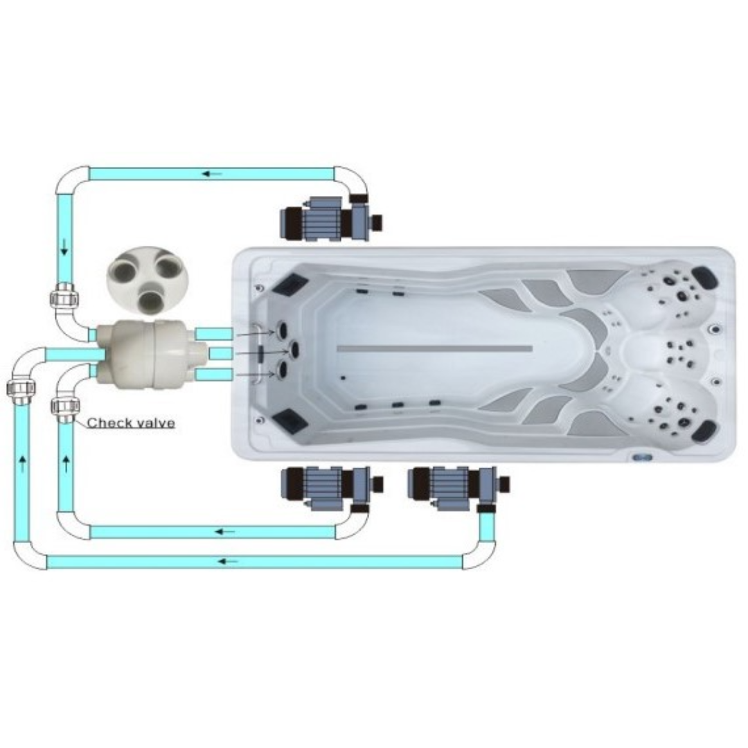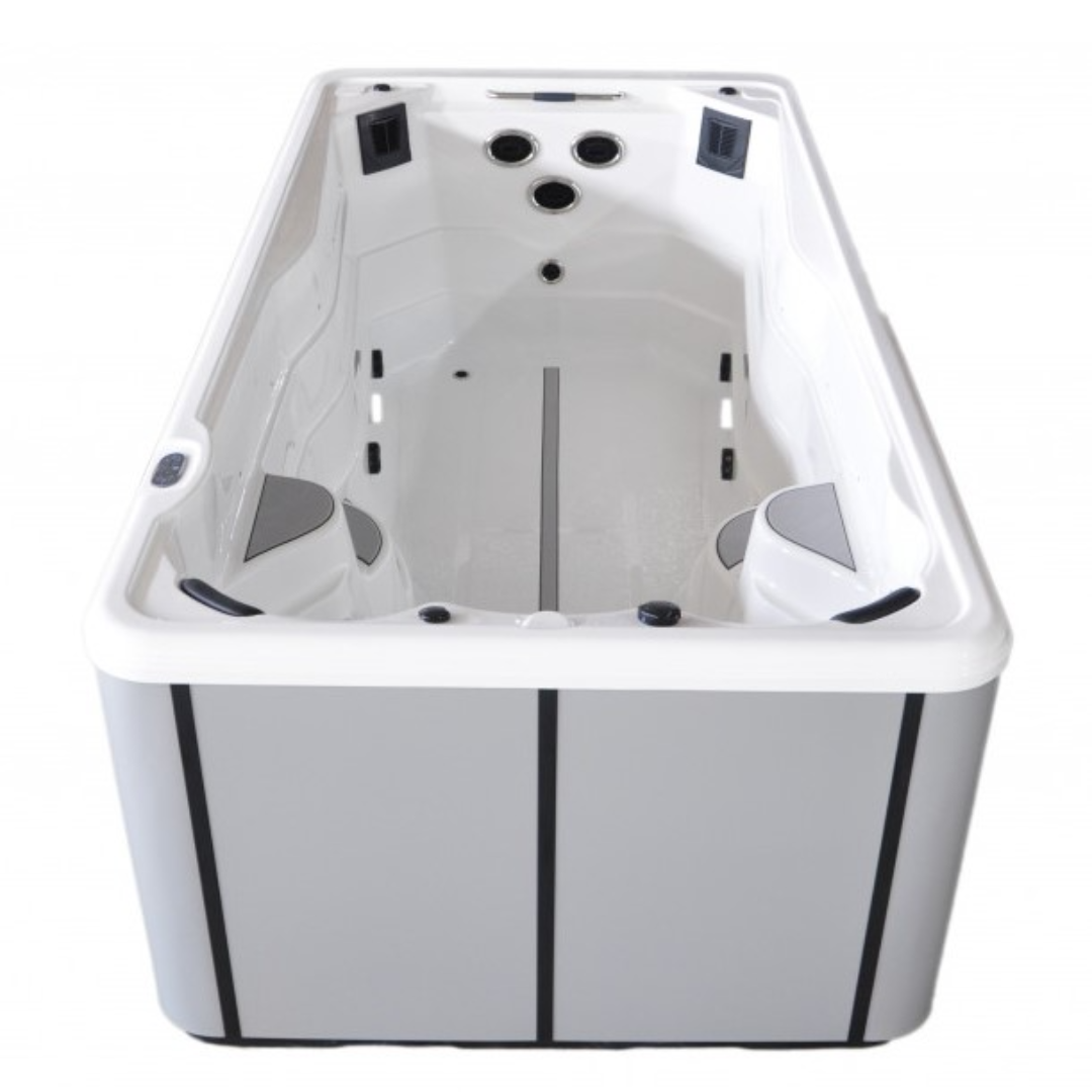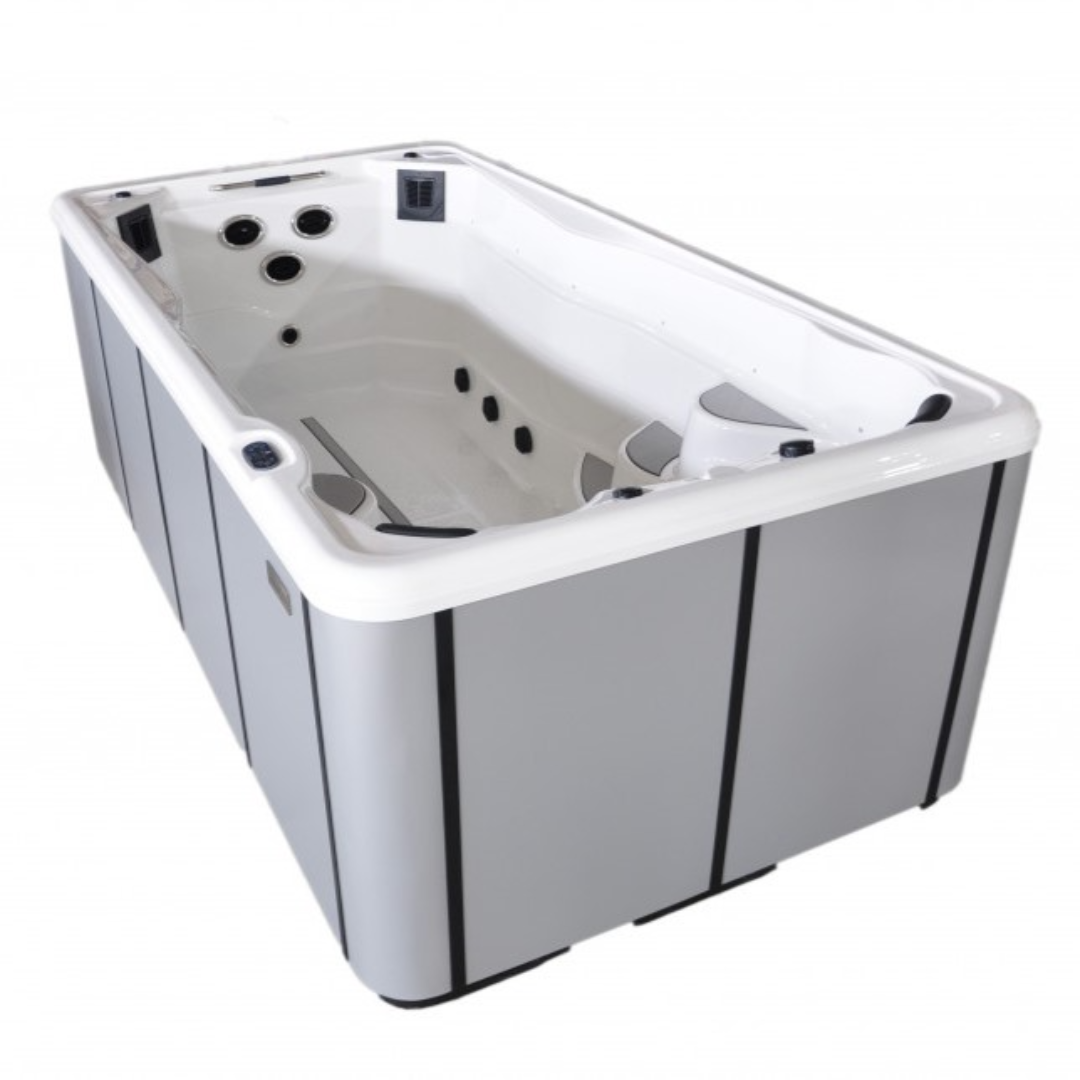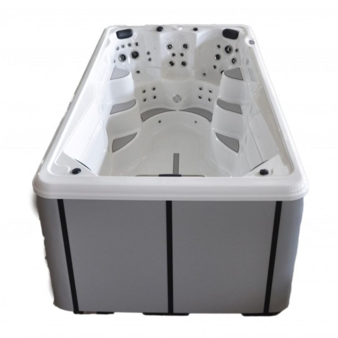 Плавательный СПА бассейн Kingston JCS-S10 - создан для комфортного отдыха и для любителей спортивного плавания. Имеет зону с сидениями для расслабляющего гидромассажа с помощью специальных форсунок и зону для активного плавания с мощными противотоками. Подходит для установки как на улице, так и в помещении.