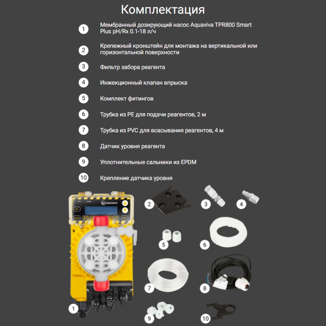 Мембранный дозирующий насос Aquaviva TPR800 Smart Plus pH/Rх, 0,1-18л/ч
