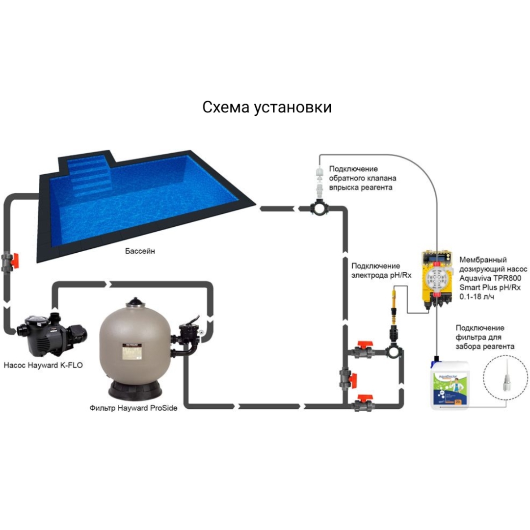 Мембранный дозирующий насос Aquaviva TPR800 Smart Plus pH/Rх - идеальный вариант для точного дозирования химии в бассейн без участия человека. Самостоятельно контролирует и регулирует уровень pH или концентрацию дезинфектанта в бассейнах. Пропорциональный режим дозирования выполняется автоматически на основании показателей электродов Redox или pH. Ручной режим дозации позволяет дозировать любые реагенты с постоянной скоростью по частоте впрыска или по проценту от максимальной производительности.