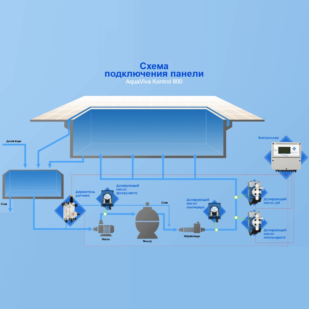 Панель управления дозацией Aquaviva pH-Rx-Free Cl - cпециализированный многорежимный контроллер для комплексного обслуживания бассейнов. Обеспечивает проверку химических параметров и управление несколькими дозирующими насосами одновременно. Блок оснащен независимыми модулями пропорционального управления, двумя программируемыми частотными выходами, последовательным портом удаленной связи RS485 с протоколом MODBUS, тремя релейными выходами, проверкой качества зонда и возможностью регистрации данных. Применяется для работы с морской водой.
