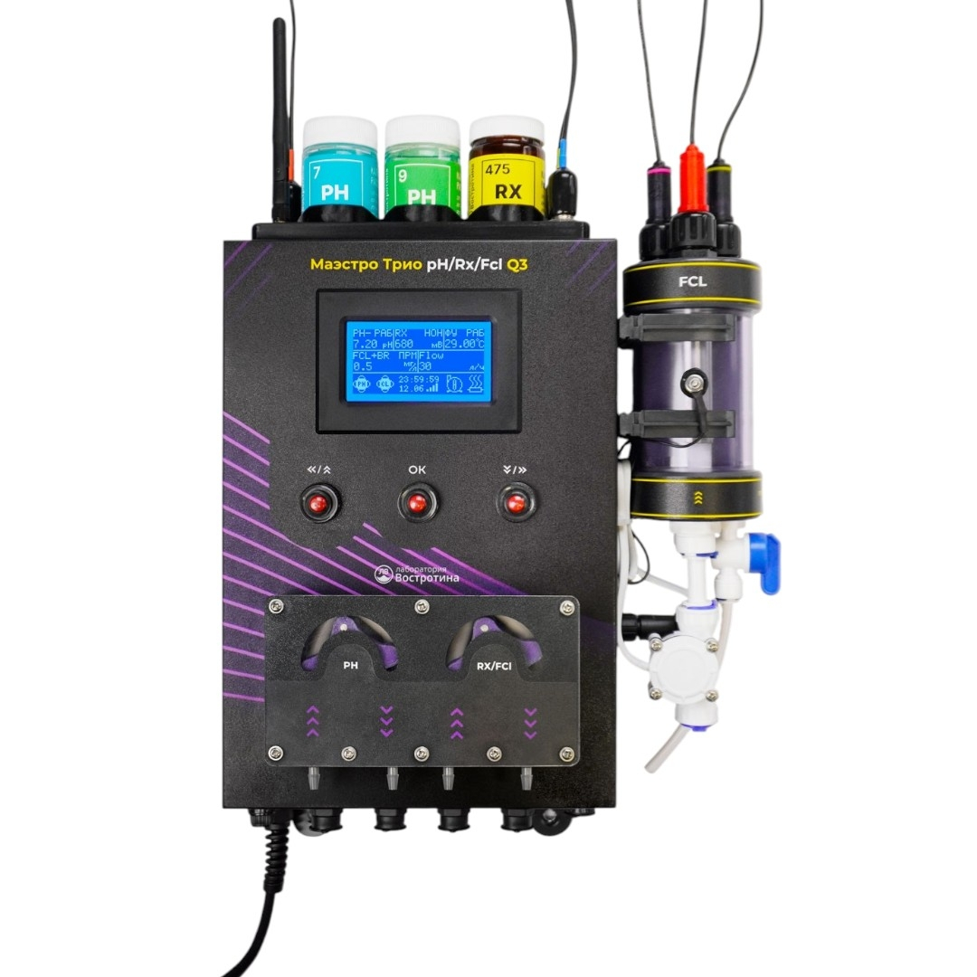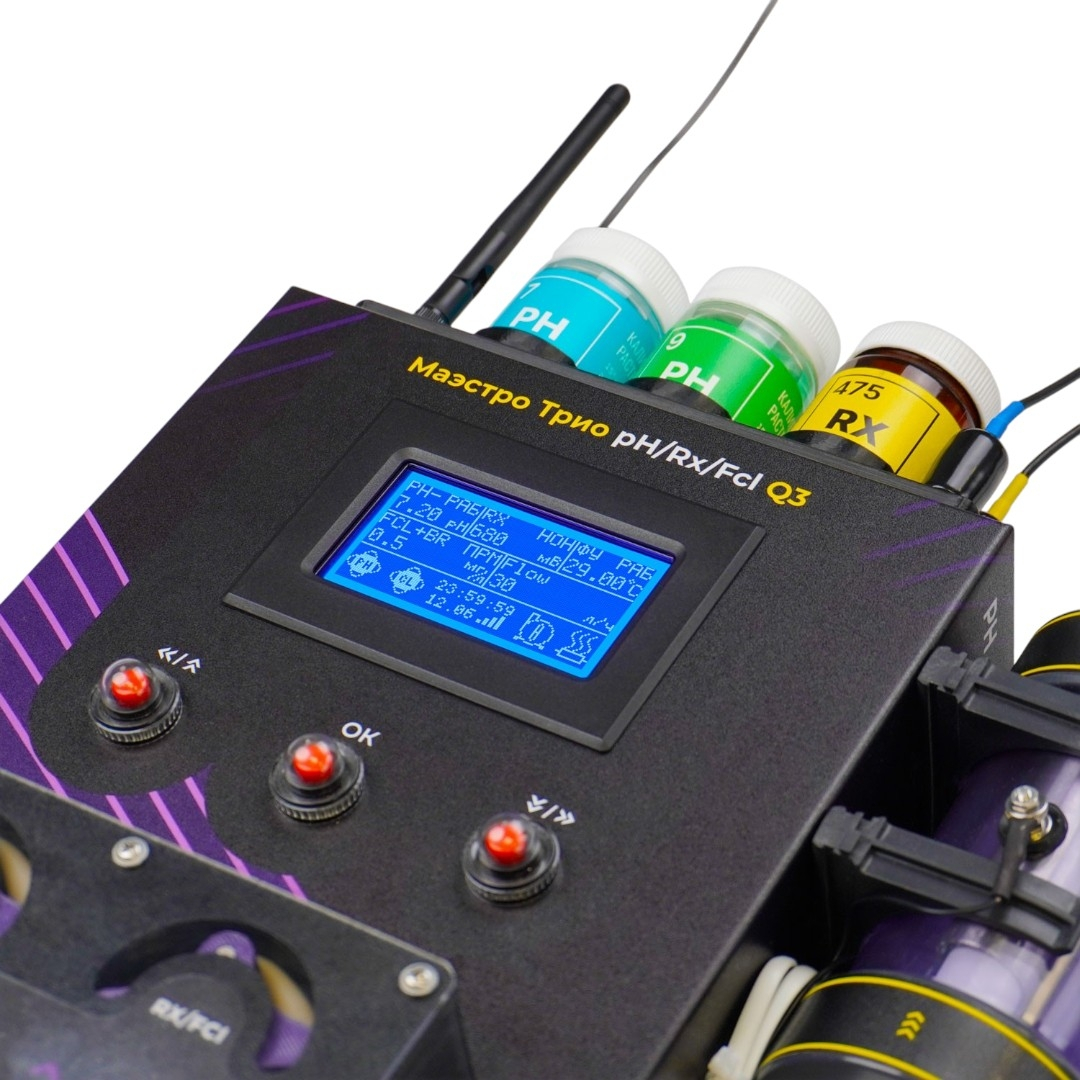 Маэстро Морская pH/Rx/FreeCI/Br - автоматическая станция контроля и дозирования по четырем параметрам (pH, редокс, свободный хлор, бром). Управляет насосом фильтрации и нагревом. Wi-Fi, TelePool, удаленный мониторинг, журнал действий пользователя, дистанционные настройки, уведомления в Telegram. Датчики устанавливаются в ячейку Ø63 мм.