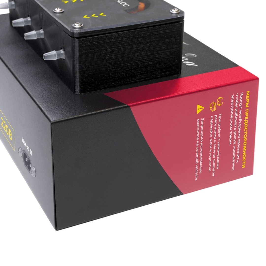 В корпусе размещены два независимых перистальтических насоса с роликами. Каждый канал подает реагент через шланг из сантопрена, без контакта жидкости с движущимися деталями. Это исключает коррозию и обеспечивает стабильную подачу. Владельцу бассейна не нужно вручную измерять или добавлять химию - насос делает это точно и равномерно, предотвращая рост водорослей и помутнение воды.