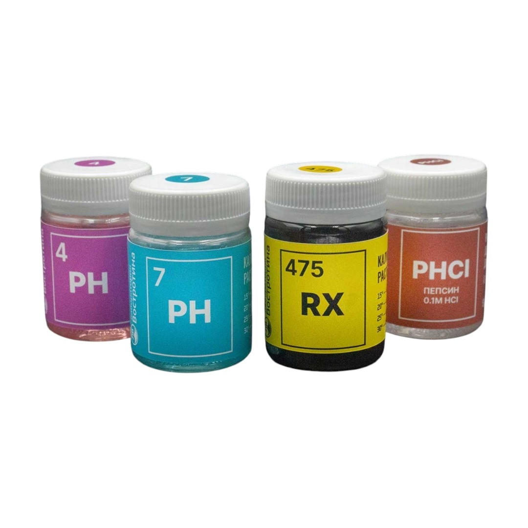 Набор №5 для ухода за электродами: pH4, pH7, 475mv, Pepsin-HCl, Лаборатория Востротина