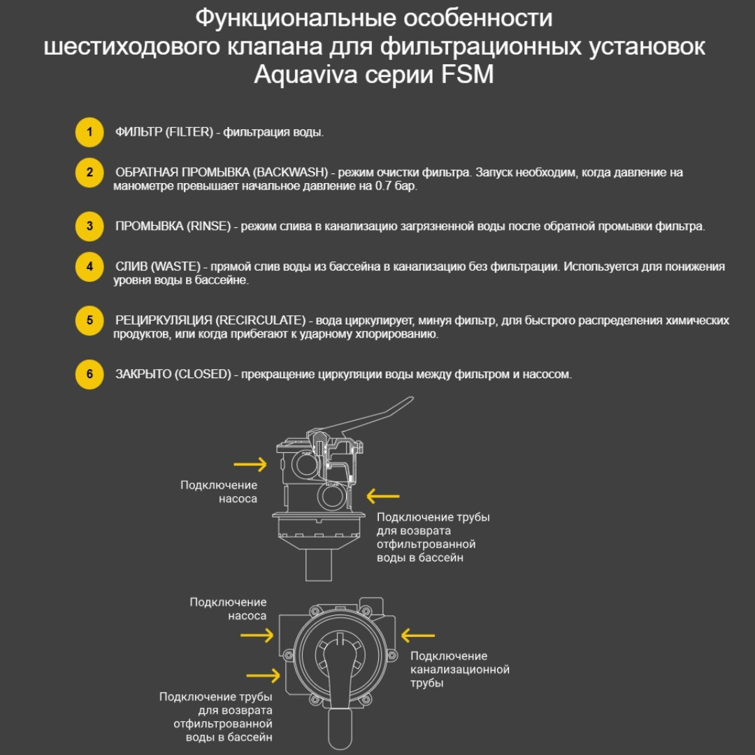 Фильтрационная установка Aquaviva FSM20 - используется для очистки воды от механических примесей и взвесей. Имеет верхний тип подключения. Фильтрующий материал - кварцевый или стеклянный песок.
