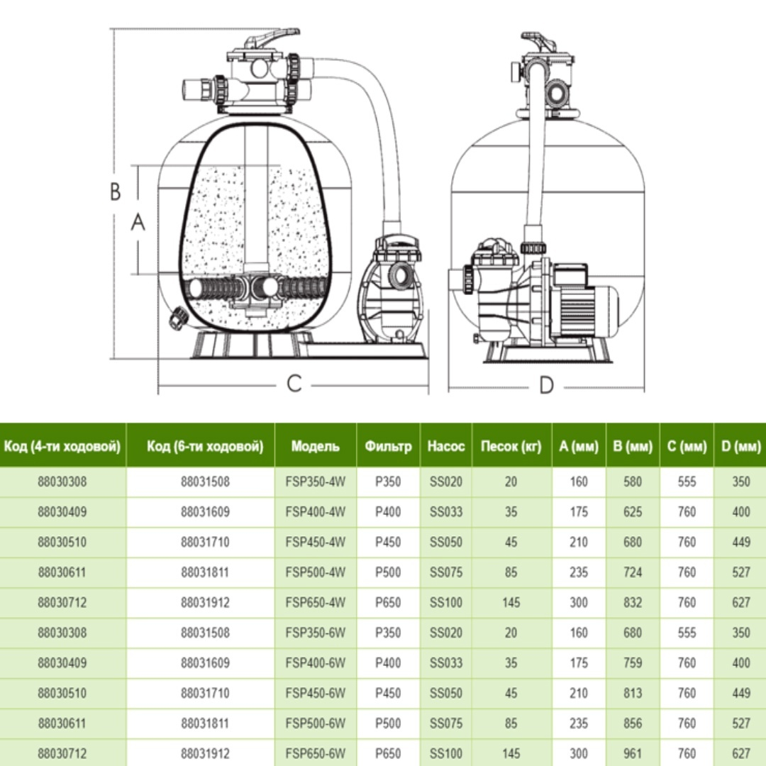Фильтрационная установка Aquaviva FSP650 - используется для очистки воды от механических примесей и взвесей. Установка с верхним расположением многоходового вентиля разработана для фильтрации воды частных бассейнов и SPA. Фильтрующий материал - кварцевый песок.