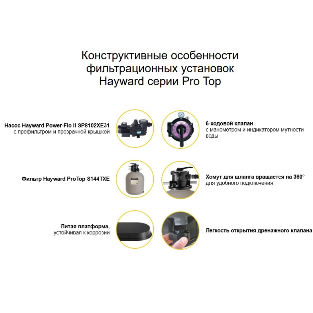Фильтрационная установка Hayward ProTop S210T8107 - используется для очистки воды от механических примесей и взвесей. Фильтрующий материал - кварцевый или стеклянный песок.