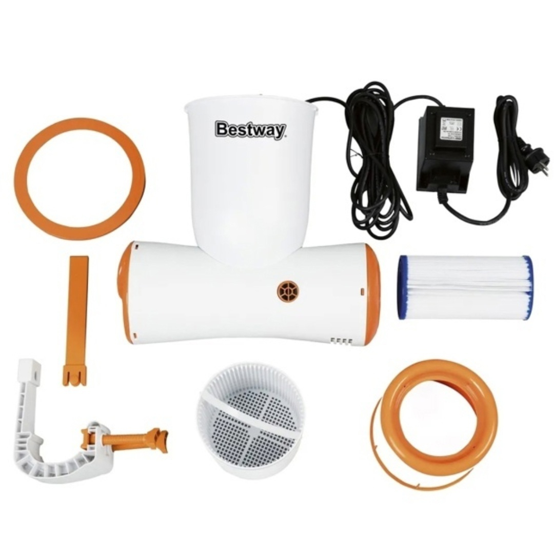 Картриджный фильтр-насос Bestway 58469 - используется для очистки поверхности воды от мусора. Подключается к электросети и крепится к боковой поверхности бассейна. Установка совмещает функцию фильтра и поверхностного скиммера. Корпус фильтра изготовлен из прочного пластика, стойкого к коррозии и солнечным лучам.