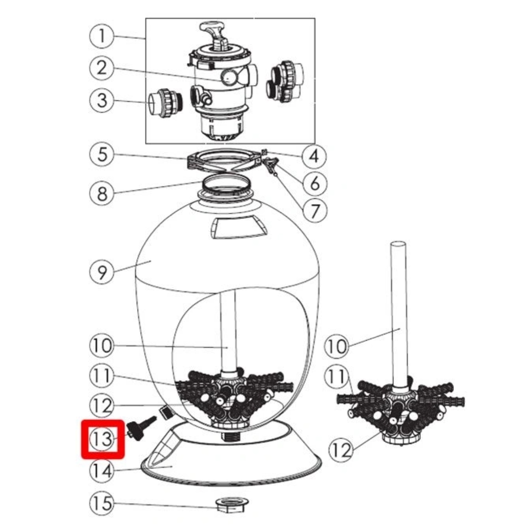Дренажный клапан Aquaviva E010024 - предназначен для фильтров Aquaviva T450, T500, T600, T700, T600B, T700B.