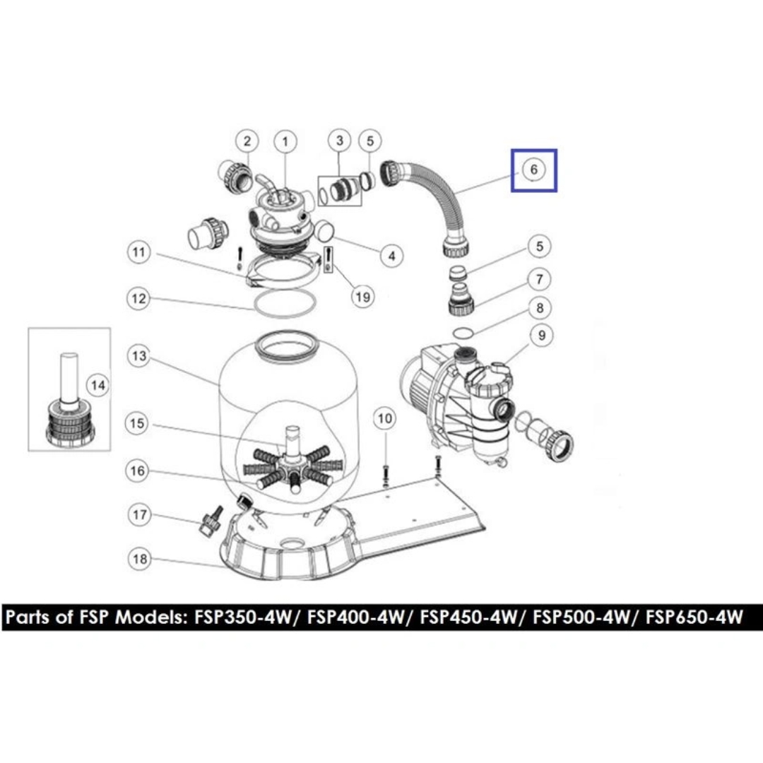 Шланг подключения Emaux 89030401 - предназначен для фильтровальной установки Aquaviva (Emaux) FSP400-4-Way. В комплекте с муфтами.