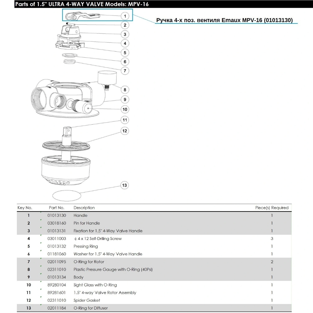 Ручка Aquaviva 1013130 - предназначена для 4-х позиционного вентиля Aquaviva MPV-16. В комплекте только ручка без опоры и платы.