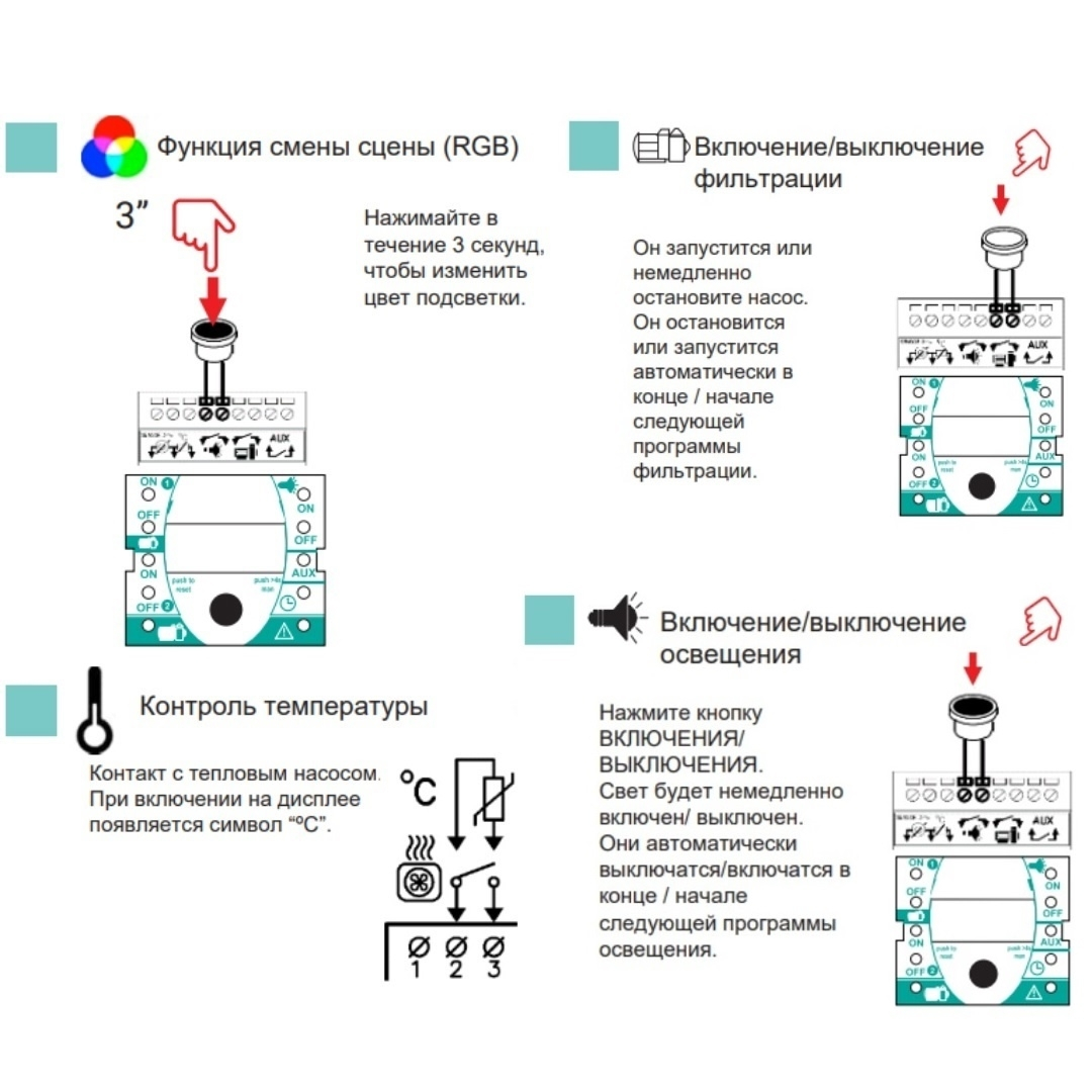 | Предназначение | Управление фильтрацией, освещением, насосом |
