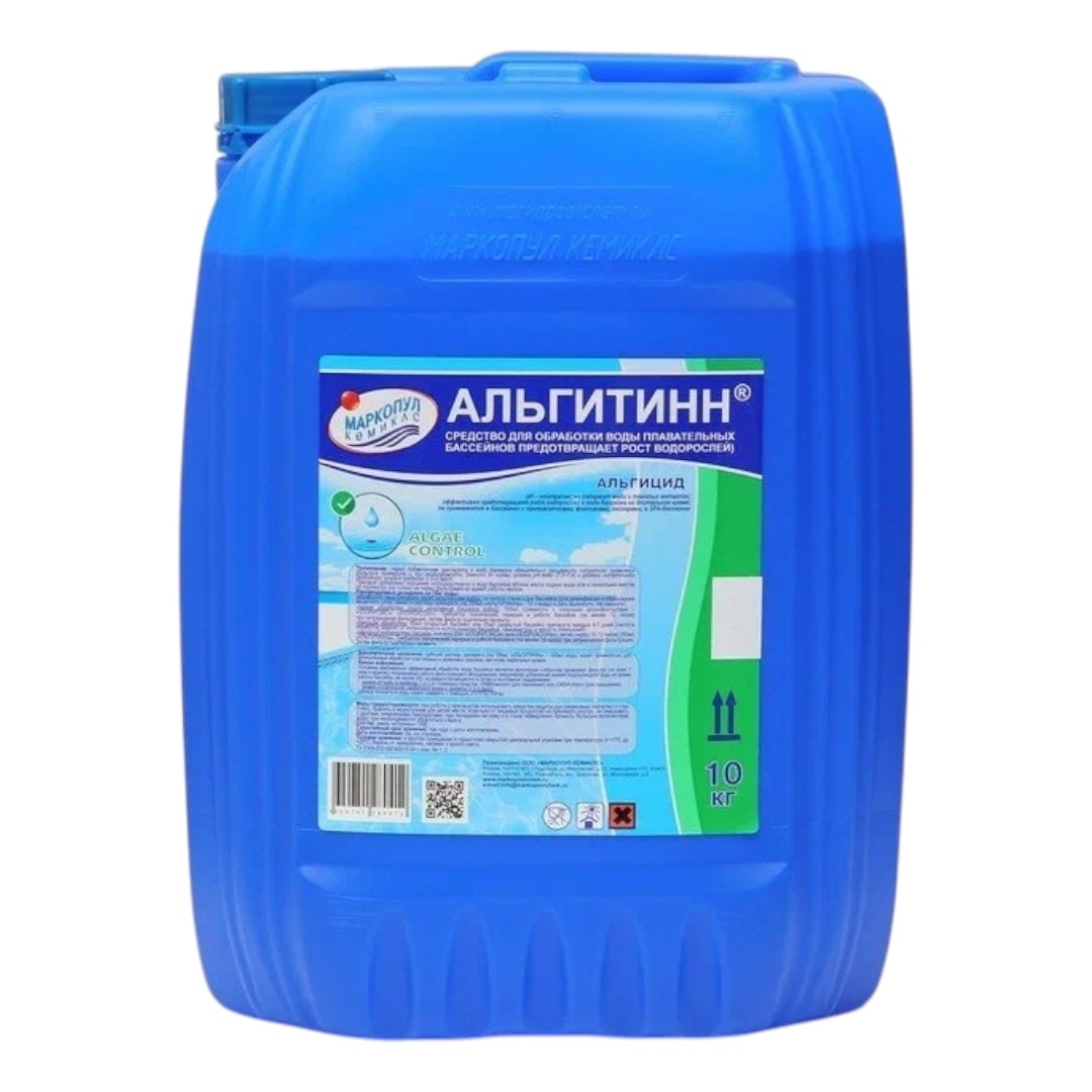Маркопул Кемиклс Альгитинн (Альгицид) - жидкое средство против водорослей. Эффективно ликвидирует споры бурого планктона, мешает развитию процесса обмена веществ у водорослей, что приводит к их гибели, и предотвращает их дальнейшее появление. Кроме этого, препарат позваляет бороться с помутнением воды. Добавляется в воду бассейна вручную или с помощью дозирующего устройства.