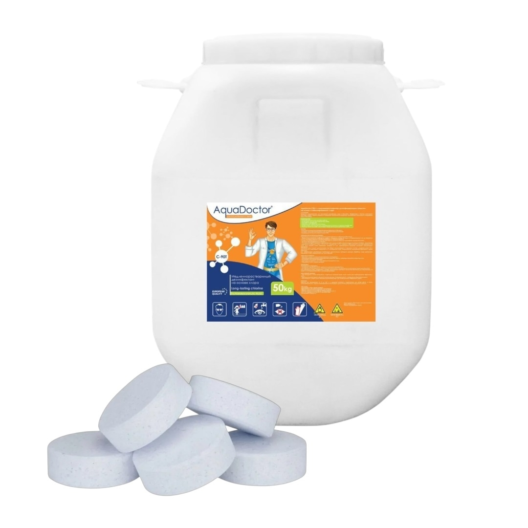 AquaDoctor C-90Т меделеннорастворимое средство для дезинфекции воды, таблетки (200г), 50кг