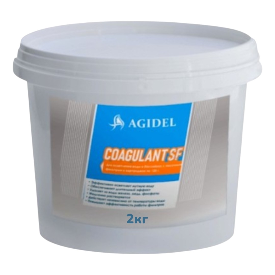 Agidel Coagulant SF - препарат для осветления воды в бассейнах с песочным фильтром. Превращает мелкие взвешенные частицы в крупные хлопья. Позволяет значительно улучшить фильтрующий эффект песчаных фильтров и добиться эффекта кристально чистой воды.