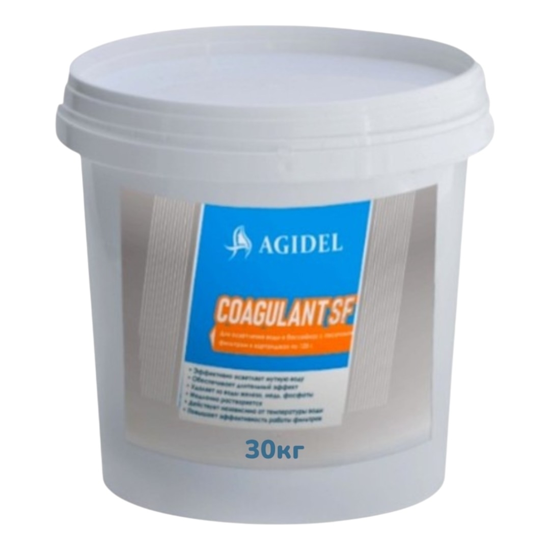 Agidel Coagulant SF - препарат для осветления воды в бассейнах с песочным фильтром. Превращает мелкие взвешенные частицы в крупные хлопья. Позволяет значительно улучшить фильтрующий эффект песчаных фильтров и добиться эффекта кристально чистой воды.