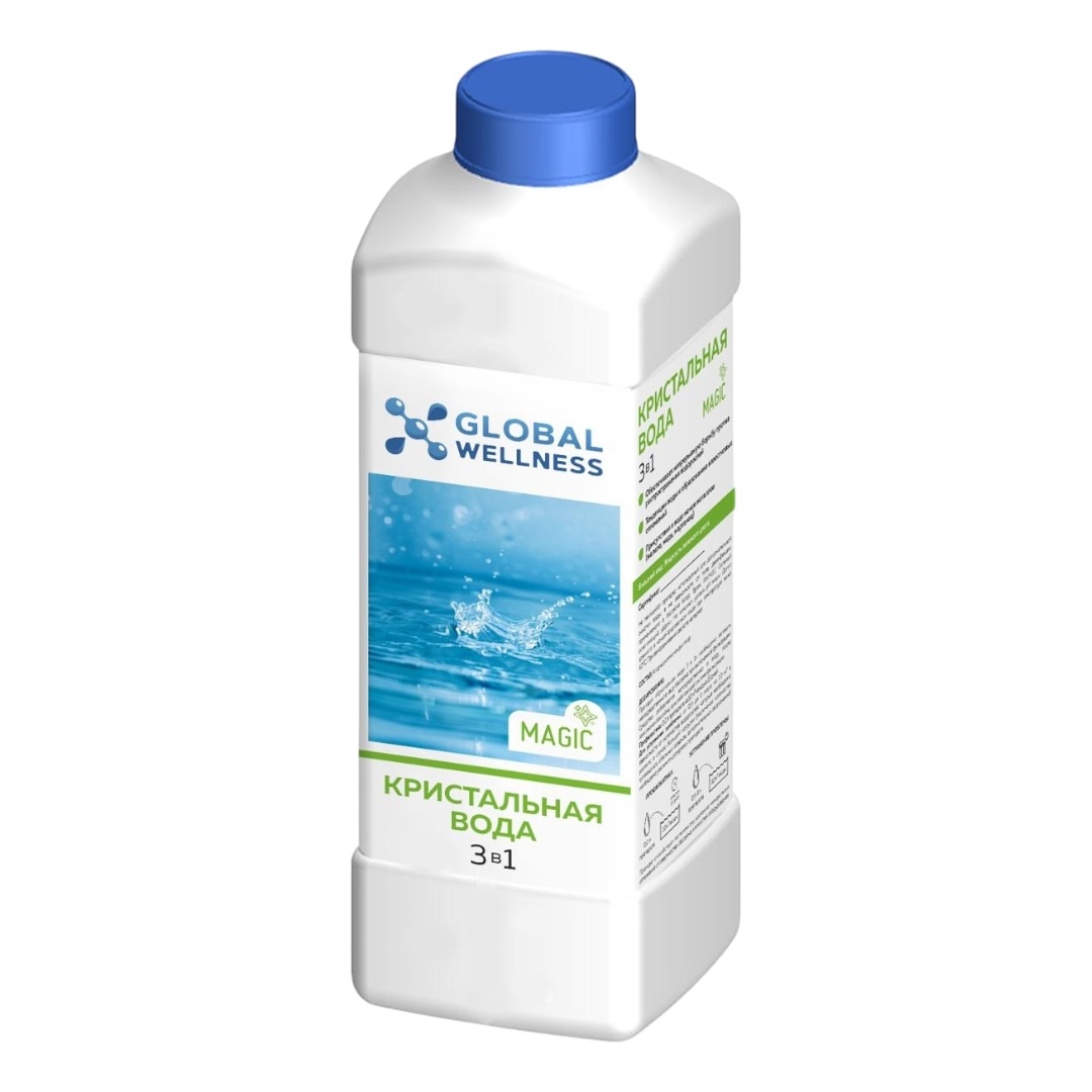 Global Wellness Кристальная вода 3в1 - средство для дополнительной очистки воды, в независимости от типа дезинфекции, применяемого в бассейне или фонтане. Обеспечивает непрерывную борьбу против: распространения водорослей, тенденции воды к образованию известковых отложений, присутствия в воде ионов металлов (железо, медь, марганец). Имеет сильный осветляющий эффект при добавлении в воду.