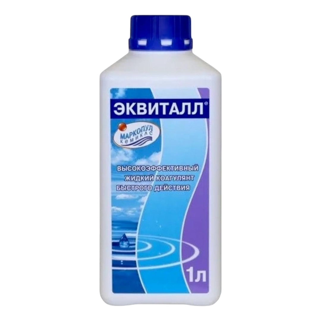 Маркопул Кемиклс Эквиталл - жидкое средство для осветления (коагуляции) воды. Препарат позволяет эффективно устранить помутнение воды бассейна независимо от температуры и методов ухода за водой. Обладает ячеистой «изломанной» структурой, что позволяет в сжатые сроки: от трёх до двенадцати часов осаждать любые посторонние примеси и взвеси (в том числе образовавшиеся и после борьбы с водорослями).