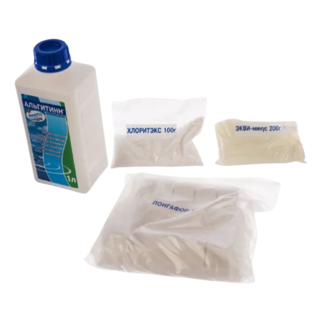 Состав набора оптимально подобран для обработки 10м³ воды: в течение 3-х месяцев, 20м³ воды: в течение 2-х месяцев, 30м³ воды: в течение 1-го месяца.