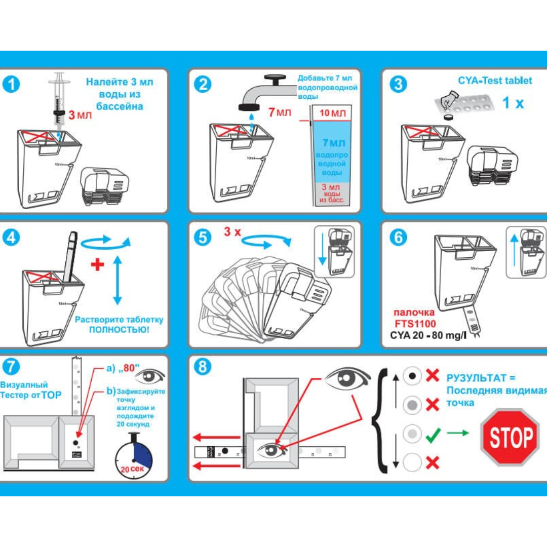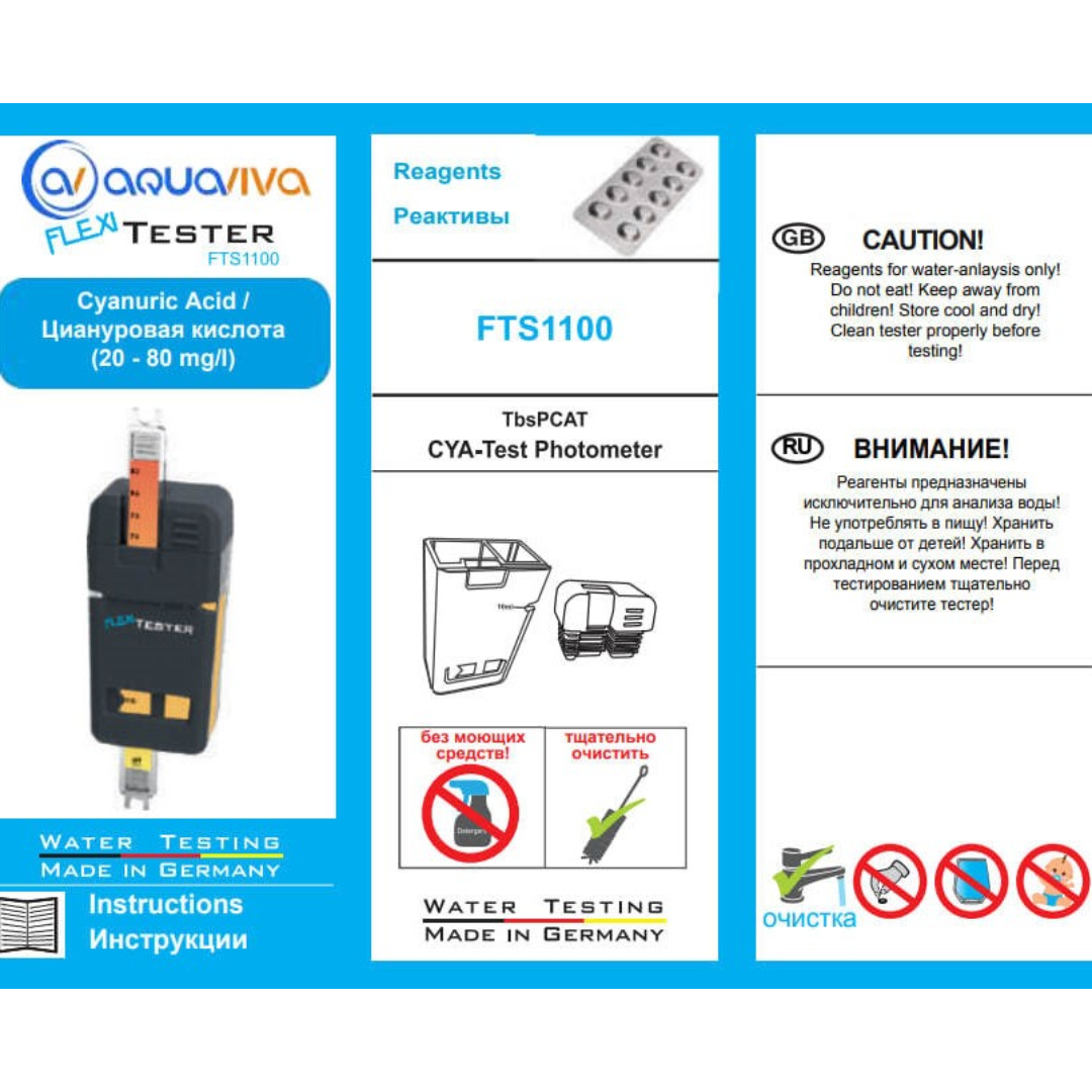 Тест-полоска FlexiTester Cyanuric Acid - предназначена для измерения количества циануровой кислоты в воде. Диапазон измерения: 20-80 мг/л. В комплекте шприц 3мл.