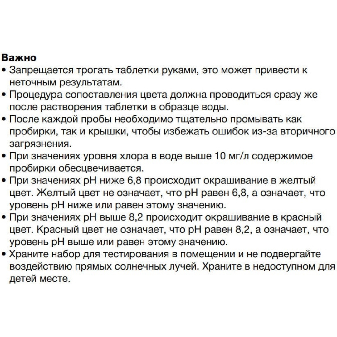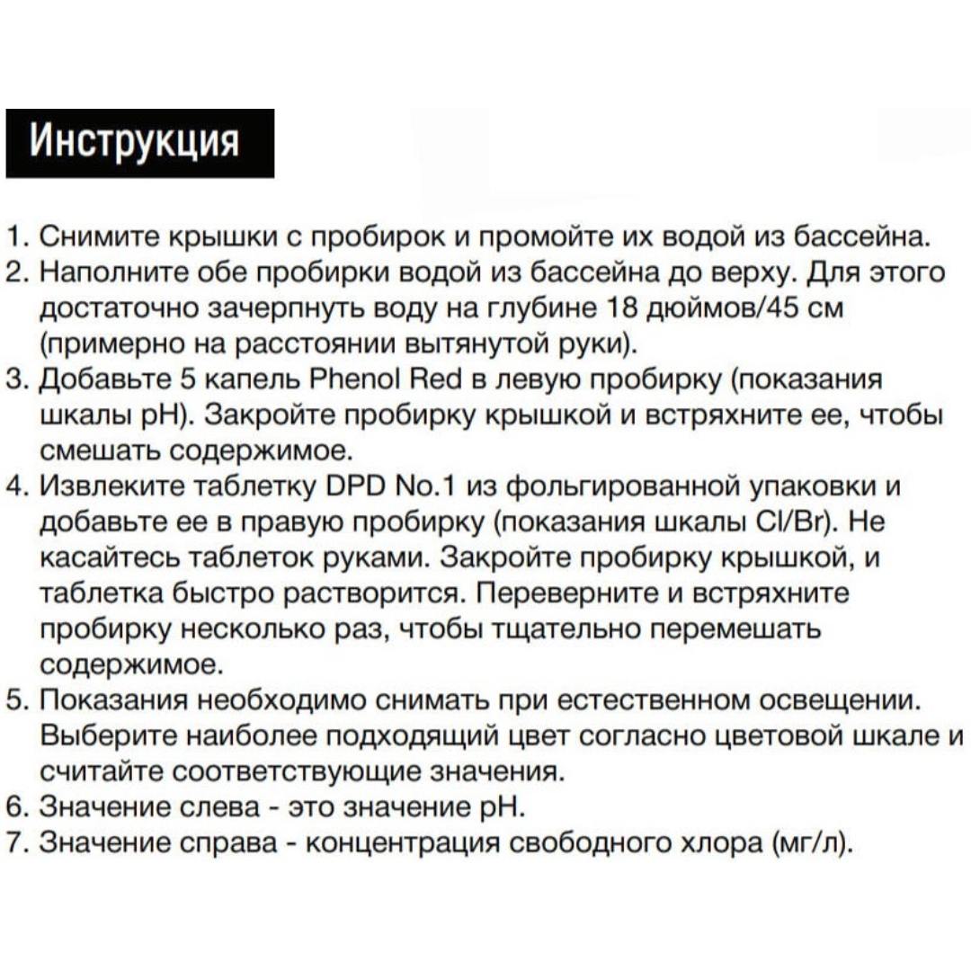 – Свободный хлор: 1 таблетка DPD №1