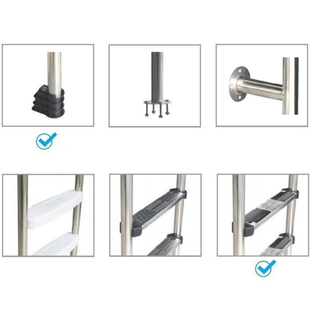 Лестница Aquaviva MUS-515 - используется для облегченного спуска в бассейн. Специальная наклонная конструкция лестницы обеспечивает удобный доступ в воду и обратный выход из нее. Отлично подойдет для частных и коммерческих бассейнов. Изготовлена из нержавеющей стали, что гарантирует длительный срок службы. Ступени с антискользящими полимерными накладками.