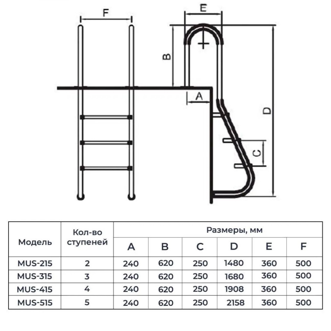 Лестница Aquaviva MUS-515, 5 ступеней, для облегченного спуска