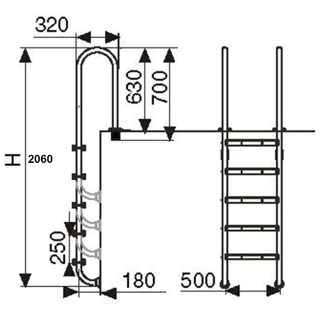 Лестница Pool King M205, 5 ступеней, AISI-316