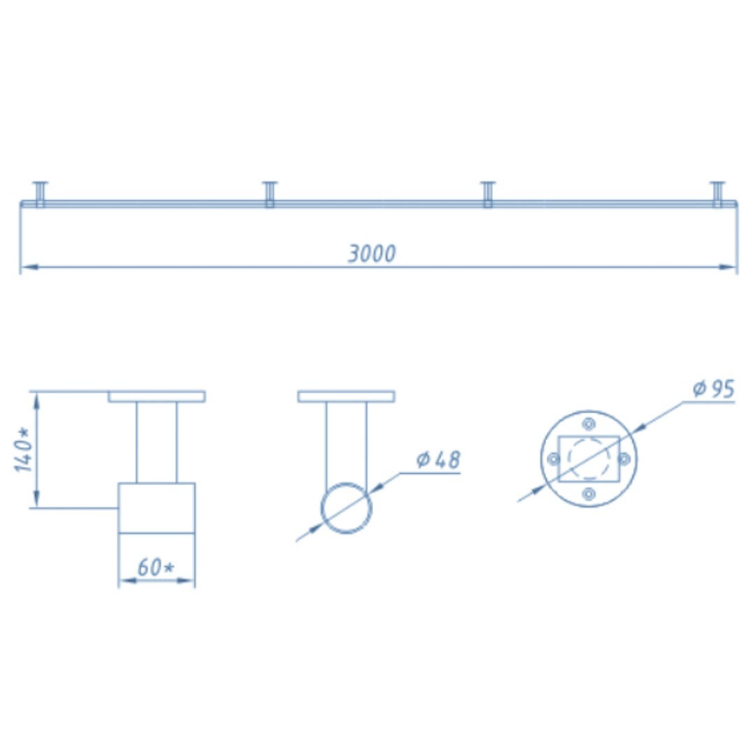 Поручень прямой сборный 1м, AISI-316, Акватехника АТ 11.12M