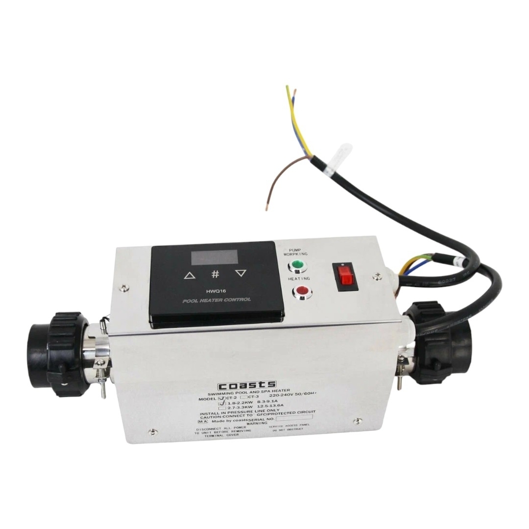 Водонагреватель Jcaqua JCT-2 - обеспечивает эффективный подогрев воды в небольших бассейнах и массажных ваннах. Благодаря небольшому размеру, его удобно установить в циркуляционных массажных трубках ванны. Корпус и нагревательный элемент изготовлены из нержавеющей стали. Устройство оснащено защитой от высоких температур, что гарантирует долговечность и безопасность. Имеет цифровое управление.