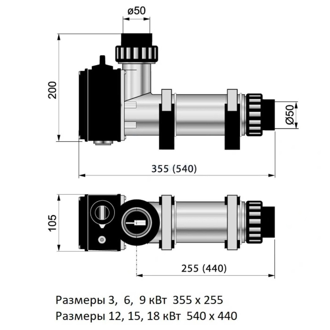 Корпус электронагревателя изготовлен из прочного полипропилена, армированного стекловолокном. ТЭН выполнен из титана. Нагреватель оборудован термостатом для регулировки температуры воды и реле защиты от перегрева. Датчик потока гарантирует безопасную работу системы при недостаточном потоке воды. Горизонтальная установка устраняет воздушные пробки и предотвращает повреждение ТЭНов.