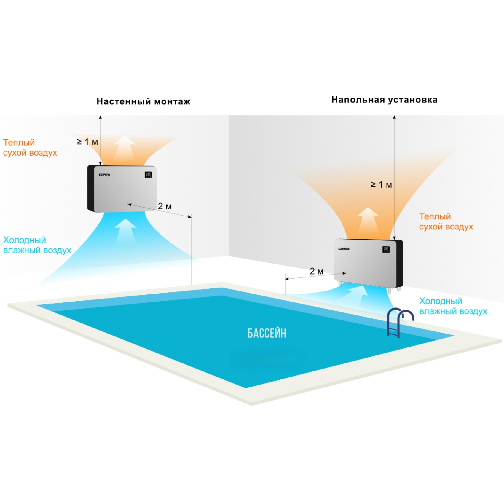 Осушитель воздуха Fairland IDHR60 инверторный - предназначен для поддержания оптимального микроклимата в помещениях с повышенным уровнем влажности: крытый бассейн, спортзал, фитнес-клуб, винный погреб, подвал и т.д. Оборудован высокоинформативным блоком управления с сенсорным дисплеем.