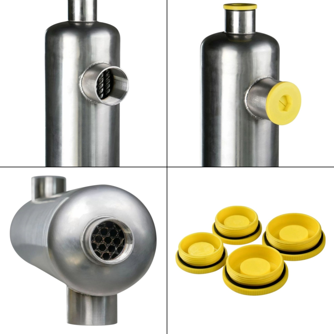 – Транспортировочные заглушки препятствуют попаданию жидкости или засорению нагревателя