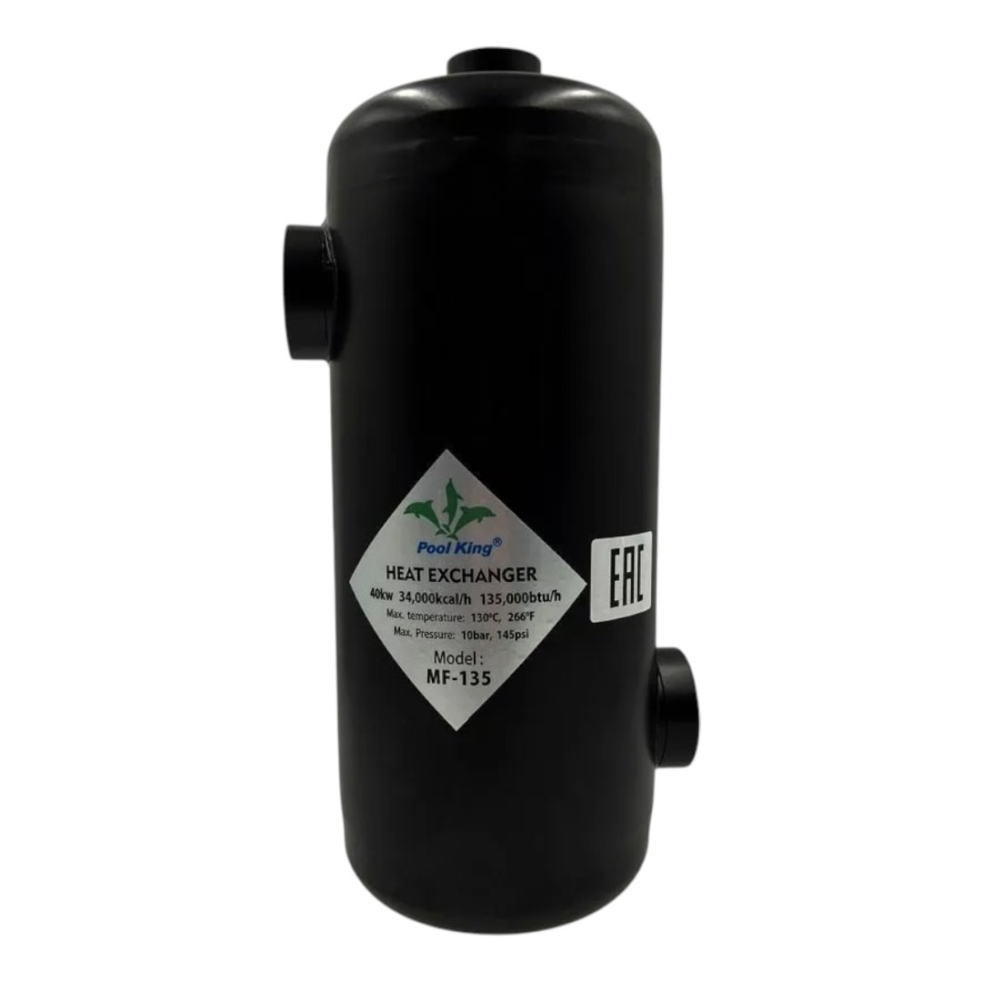 Теплообменник Pool King MF-135 - предназначен для поддержания заданной температуры воды в небольших частных и коммерческих бассейнах и СПА. Может быть подключен к электрическому водонагревателю, бойлеру, тепловому насосу или солнечным панелям.