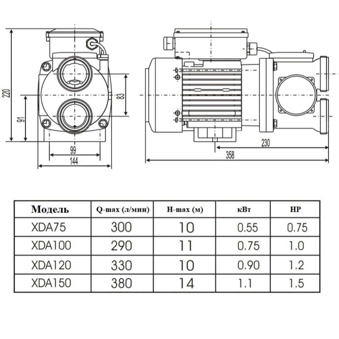 Насос Aquaviva LX XDA75M - предназначен для напорной подачи и циркуляции воды. Применяется в бассейнах, СПА и гидромассажных ваннах. Имеет параллельное размещение всасывающего и подающего патрубков, что обеспечивает удобство и экономию места при монтаже.
