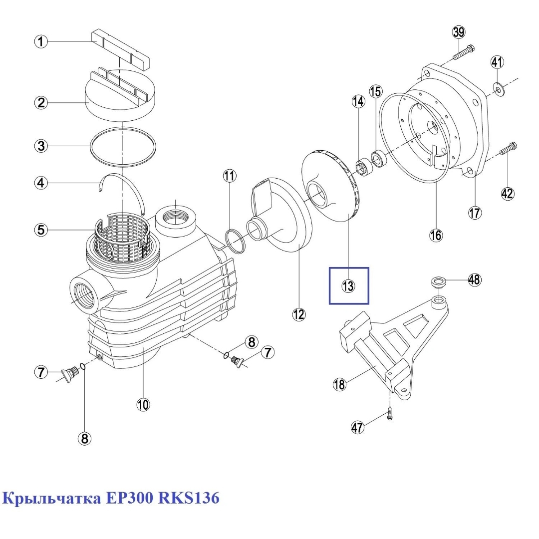 Крыльчатка насоса Kripsol EP300, Hayward KNG300 (RKS 136/RBH0007.11R/RPUM0013.11R)
