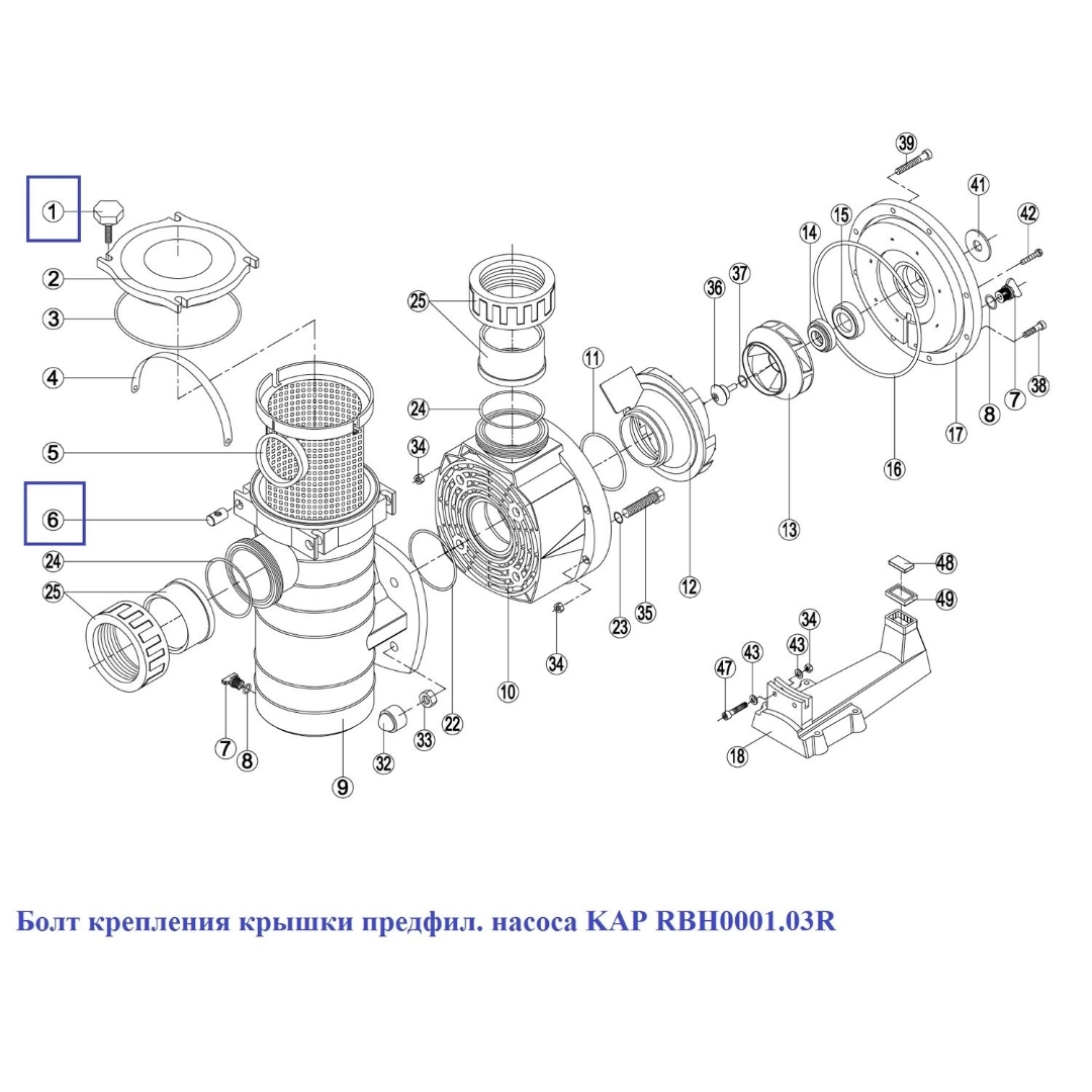 Болт Kripsol RBH0001.03R - предназначен для крепления крышки префильтра насоса Kripsol KAP.