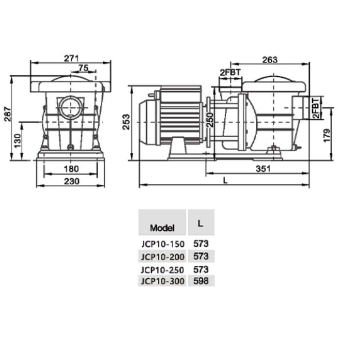 Насос Jcaqua JCP10-250, 220В, 36м³/ч, 1,85кВт, с префильтром