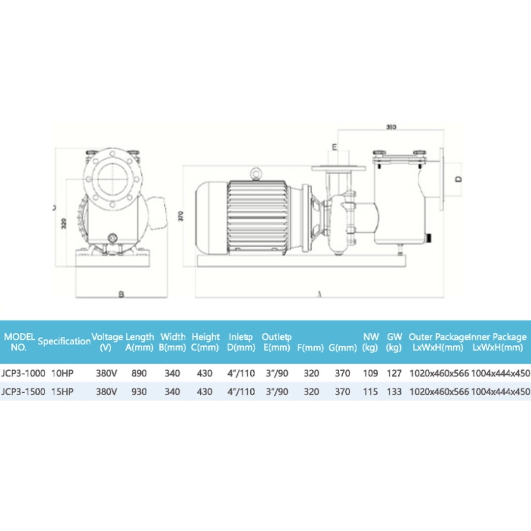Насос Jcaqua JCP3-1000, 380В, 10HP, 100м³/ч, с префильтром