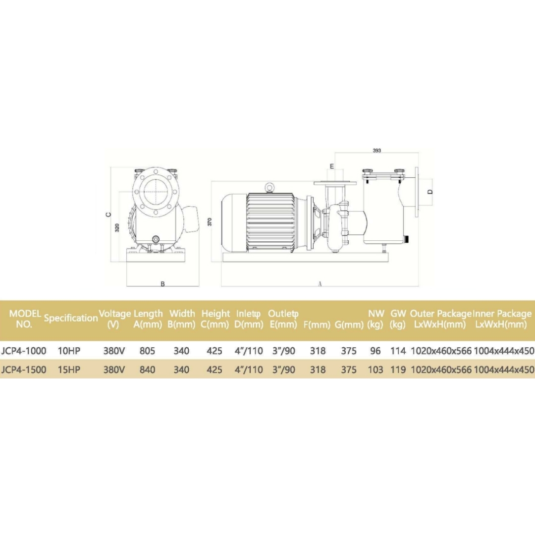 Насос Jcaqua JCP4-1500 - предназначен для перекачивания воды в системах водоподготовки бассейнов. Оснащен предварительным фильтром. Фильтрующая корзина большой емкости позволяет сократить время очистки. Отличается высокой производительностью и эффективностью, ускоряет подачу воды (орошение) и повышает энергоэффективность. Подходит для работы с соленой или морской водой.