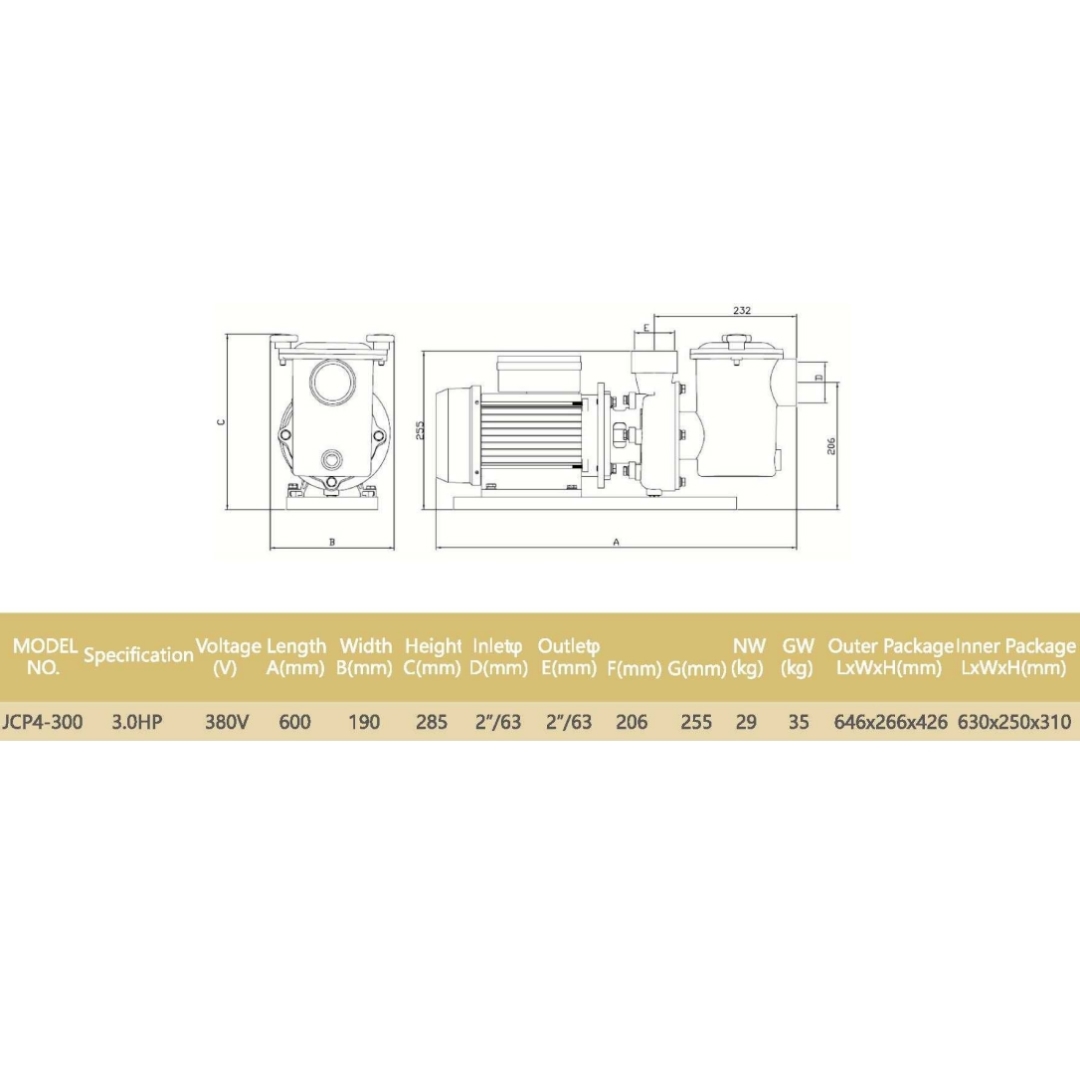 Насос Jcaqua JCP4-300 - предназначен для перекачивания воды в системах водоподготовки бассейнов. Оснащен предварительным фильтром. Фильтрующая корзина большой емкости позволяет сократить время очистки. Отличается высокой производительностью и эффективностью, ускоряет подачу воды (орошение) и повышает энергоэффективность. Подходит для работы с соленой или морской водой.