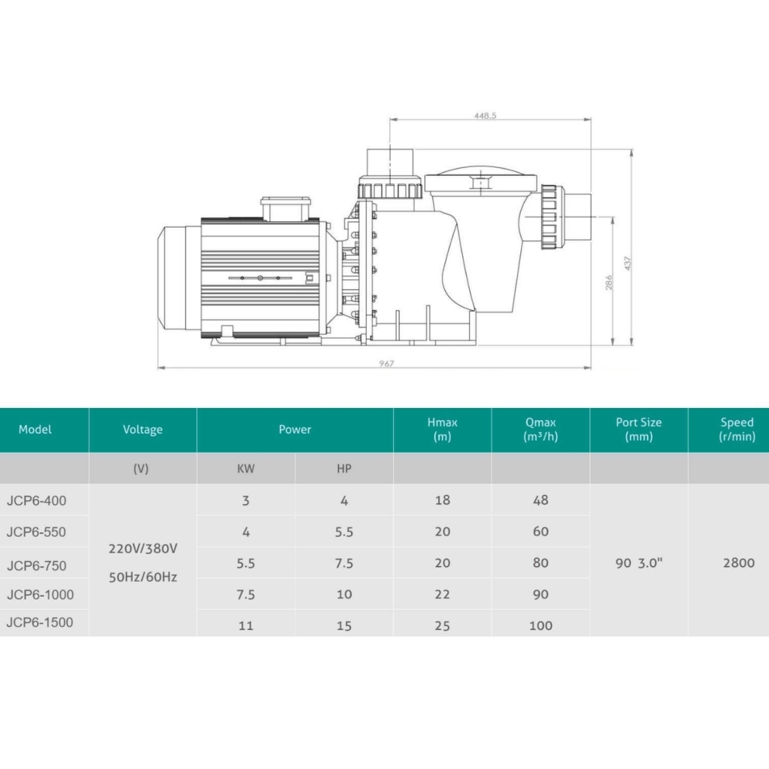 Насос Jcaqua JCP6-1500 - предназначен для фильтрации и циркуляции воды в бассейне. Оснащен префильтром с большой вместимостью. Префильтр защищает систему от попадания крупного мусора. Прозрачная крышка префильтра позволяет легко контролировать уровень загрязнения.