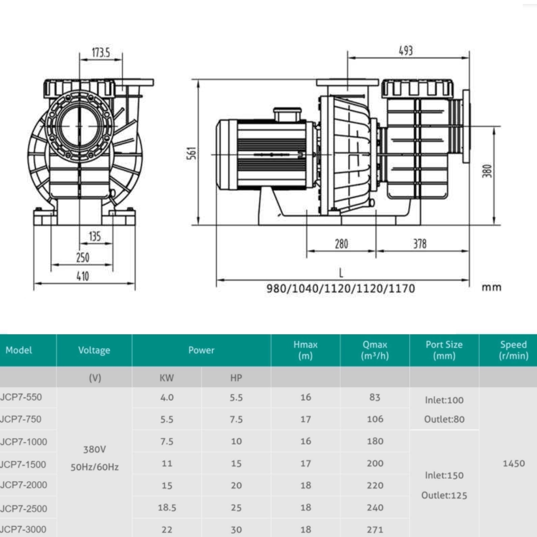 Насос Jcaqua JCP7-1500, 380В, 200м³/ч, 11кВт, с префильтром