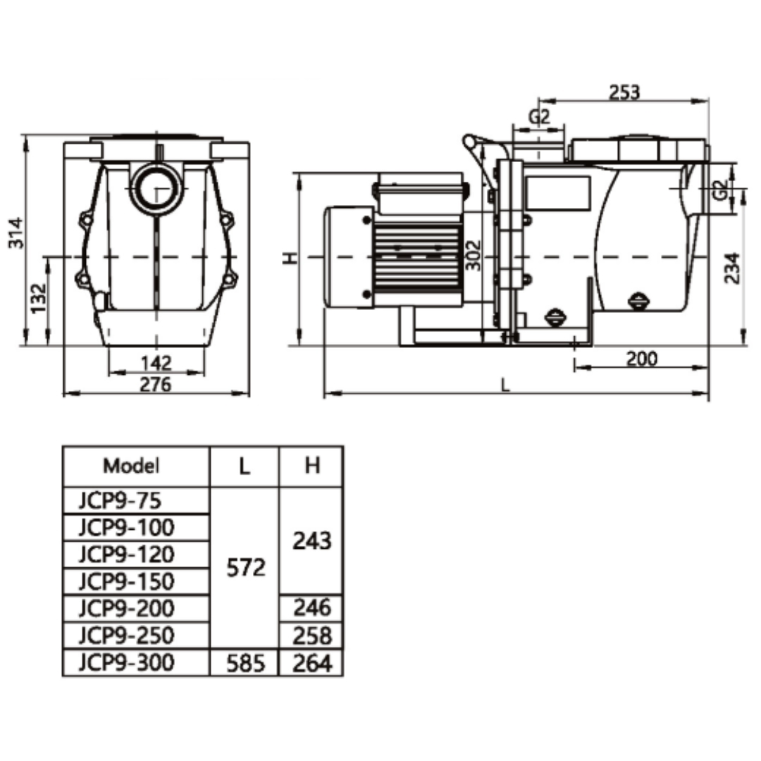 Насос Jcaqua JCP9-150 - предназначен для фильтрации и циркуляции воды в бассейне. Оснащен предварительным фильтром с прозрачной крышкой. Префильтр защищает систему от попадания крупного мусора. Прозрачная крышка префильтра позволяет легко контролировать уровень загрязнения.