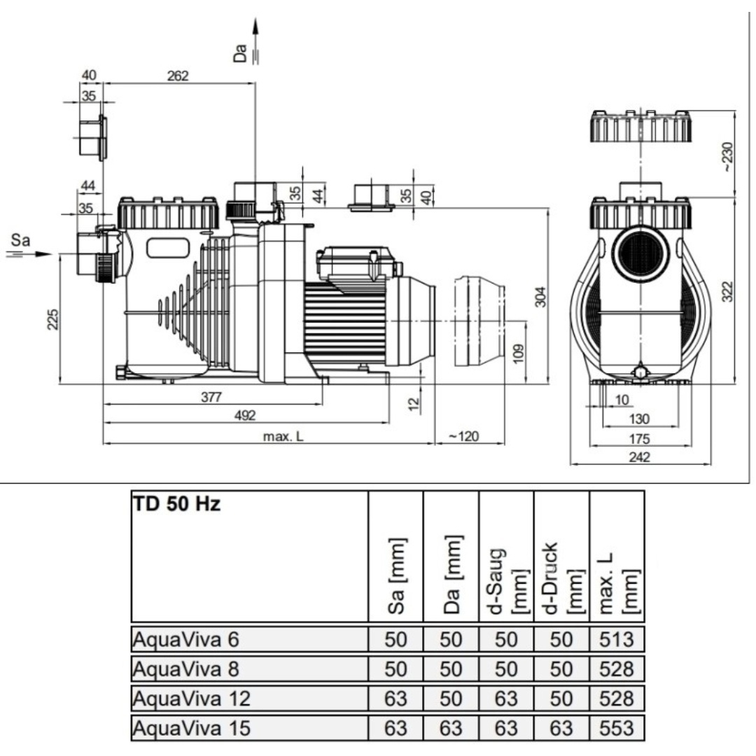 Насос Aquaviva SP 12 - предназначен для перекачивания воды в системах водоподготовки плавательных бассейнов. Идеально подходит для поддержания чистоты и гигиены воды. Циркуляционный насос имеет префильтр грубой очистки для защиты рабочего колеса от крупного мусора. Крышка префильтра легко устанавливается и снимается.