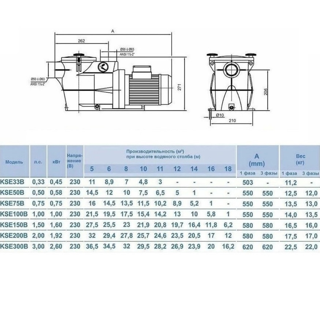 Насос Kripsol KSE-100 M IE2, 220В, 15м³/ч, 1кВт, с префильтром