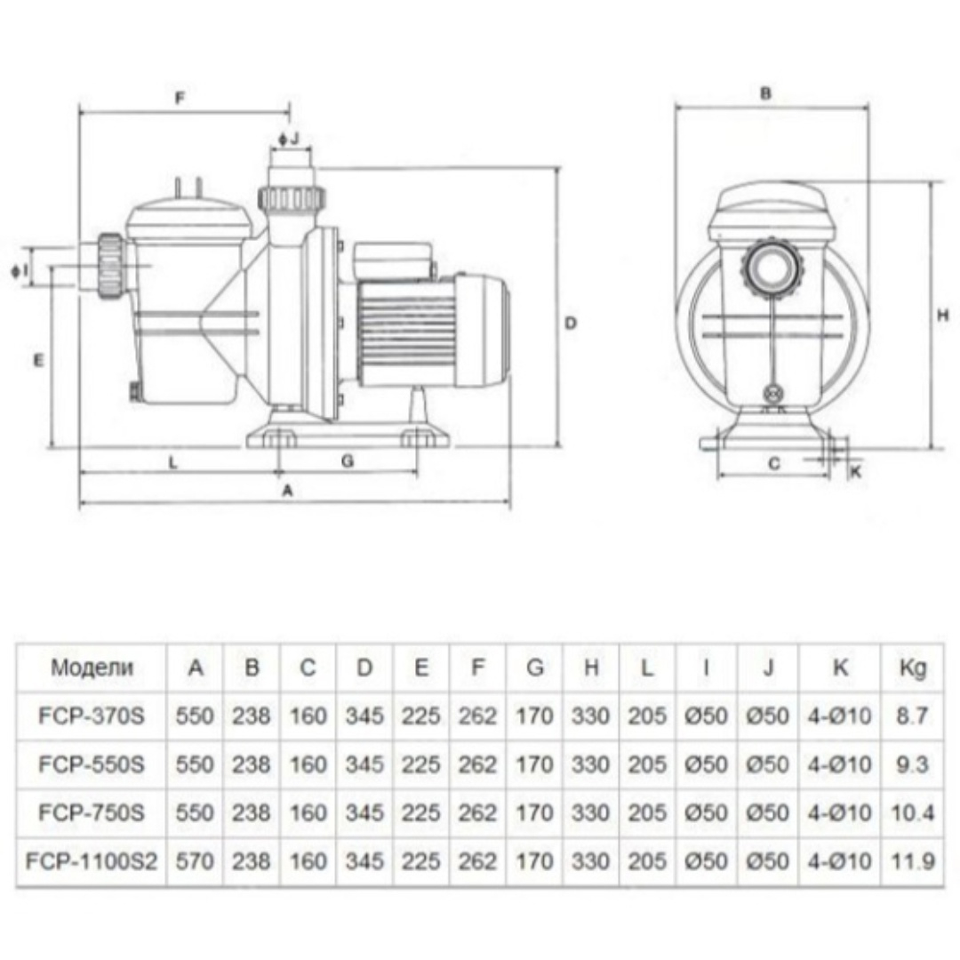 Насос Pool King FCP-550S, 220В, 13,9м³/ч, 0,95кВт, с префильтром