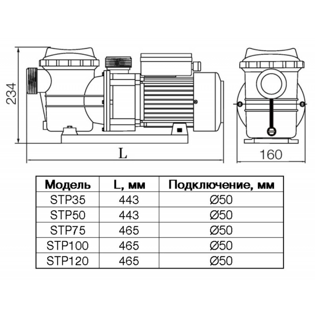 Насос Pool King STP75, 220В, 8м³/ч, 0,55кВт, с префильтром