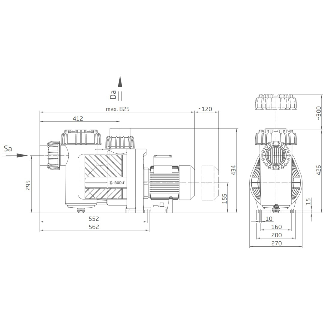 Выполнен из долговечных материалов, которые не боятся коррозии и отлично выдерживают внешнее неблагоприятное воздействие. Корпус насоса изготовлен из полипропилена. Торцевое уплотнение находится на пластиковом носике рабочего колеса. Вал электромотора не соприкасается с водой бассейна. Может быть установлен на 3 метра выше или ниже уровня воды.
