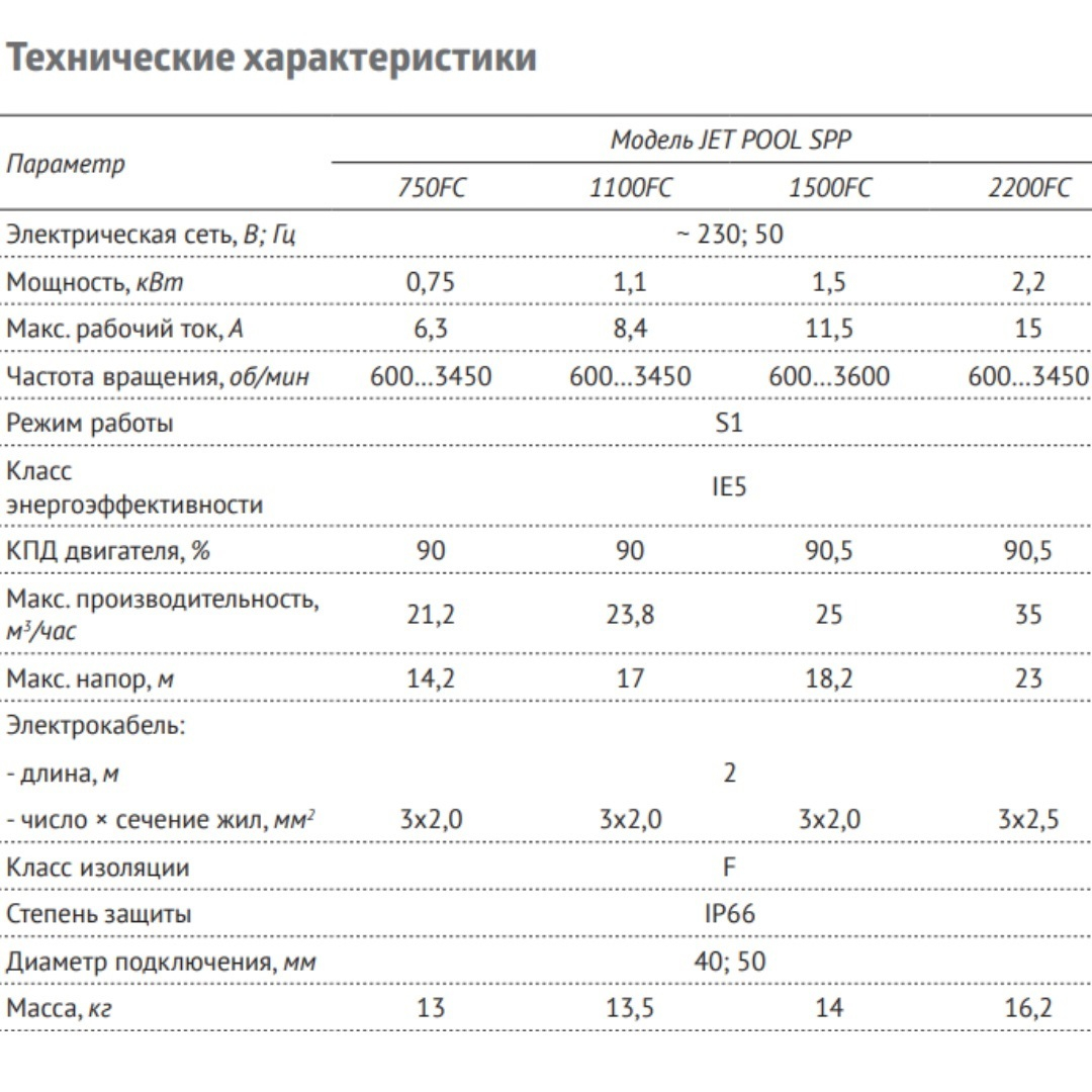 – Двигатель насоса с кабелем питания и режимом работы S1
