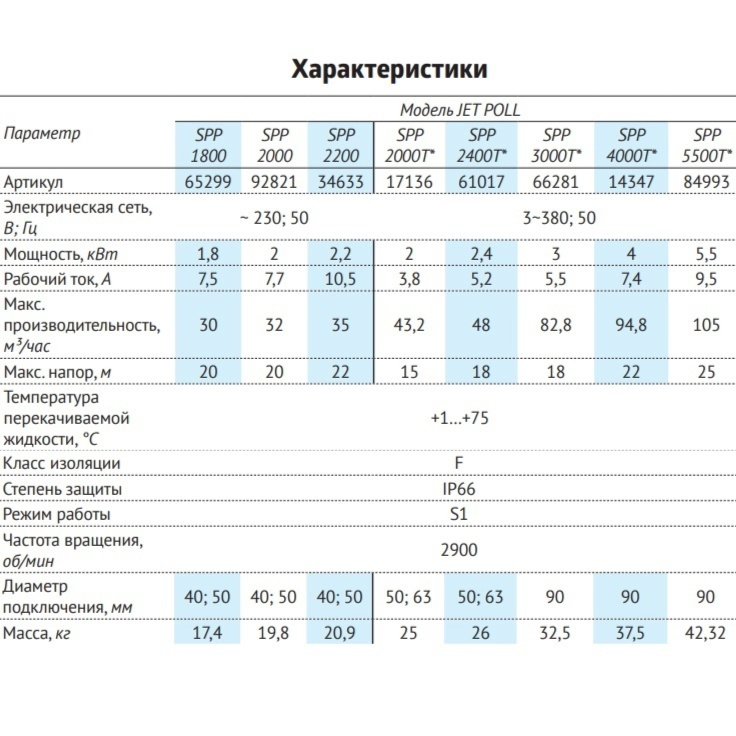 – Двигатель насоса с кабелем питания и режимом работы S1